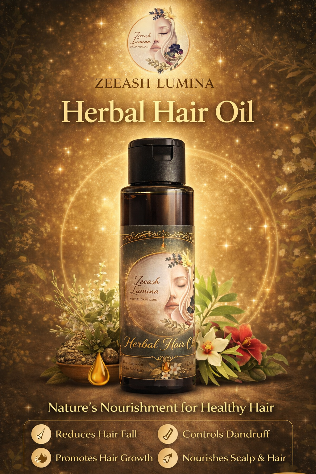 Zeesh Lumina Herbal Hair Oil is a nourishing blend of natural herbs and essential oils designed to strengthen hair from root to tip. It helps reduce hair fall, control dandruff, and promote healthy hair growth. This lightweight yet deeply penetrating oil nourishes the scalp, improves circulation, and restores natural shine. Regular use results in thicker, healthier, and more resilient hair.